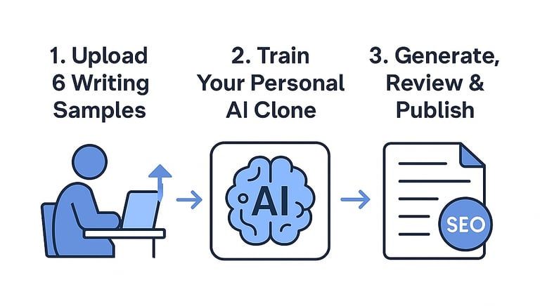 Clone your style and produce SEO-optimized, undetectable copy in three simple steps.